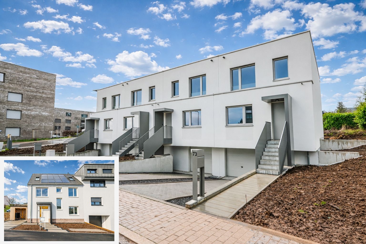 Ces quatre maisons s’inscrivent dans le PAP « Mathendahl », futur écoquartier de Differdange qui comprendra 245 appartements et 150 maisons unifamiliales, ainsi que des surfaces commerciales. Un tiers de la surface du quartier sera dédié aux espaces publics et aux zones vertes communes.