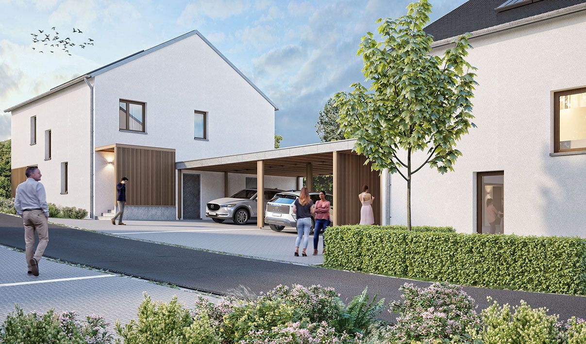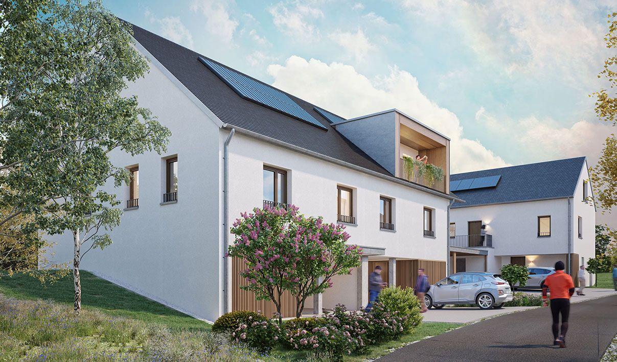 L’ensemble prévoit la réalisation 5 maisons unifamiliales et 11 maisons avec logement intégré de types et de typologies variés. Les logements sont conçus pour favoriser la vie familiale et le confort de la vie à la campagne pour tous avec des espaces extérieurs dédiés à chaque logement, offrant à chacun la qualité de vie d’une maison individuelle.