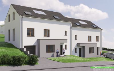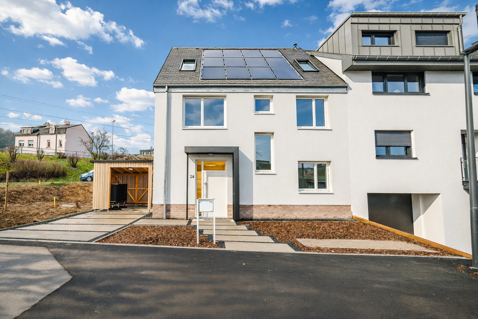 Au rez-de-chaussée, les pièces de vie s’ouvrent sur une terrasse et un jardin à l’arrière de la maison. Le premier étage accueille trois chambres et une salle de bains, tandis que les combles comprennent une chambre supplémentaire, une salle de douche et un local technique et de stockage. Afin de réduire l’exposition au chemin de fer, une végétation de haies sera plantée le long de la rue des Trévires.